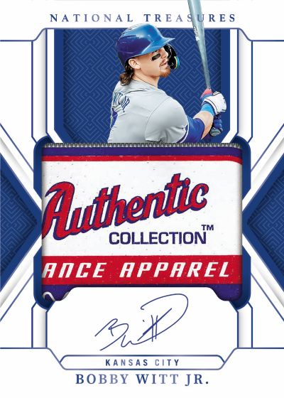 2025 National Treasures features incredible Patch Autograph cards in sets such as Treasured Material Signatures and Clutch Factor Signatures, showcasing the game’s top Rookies and Stars like Bobby Witt Jr. and Charlie Condon!